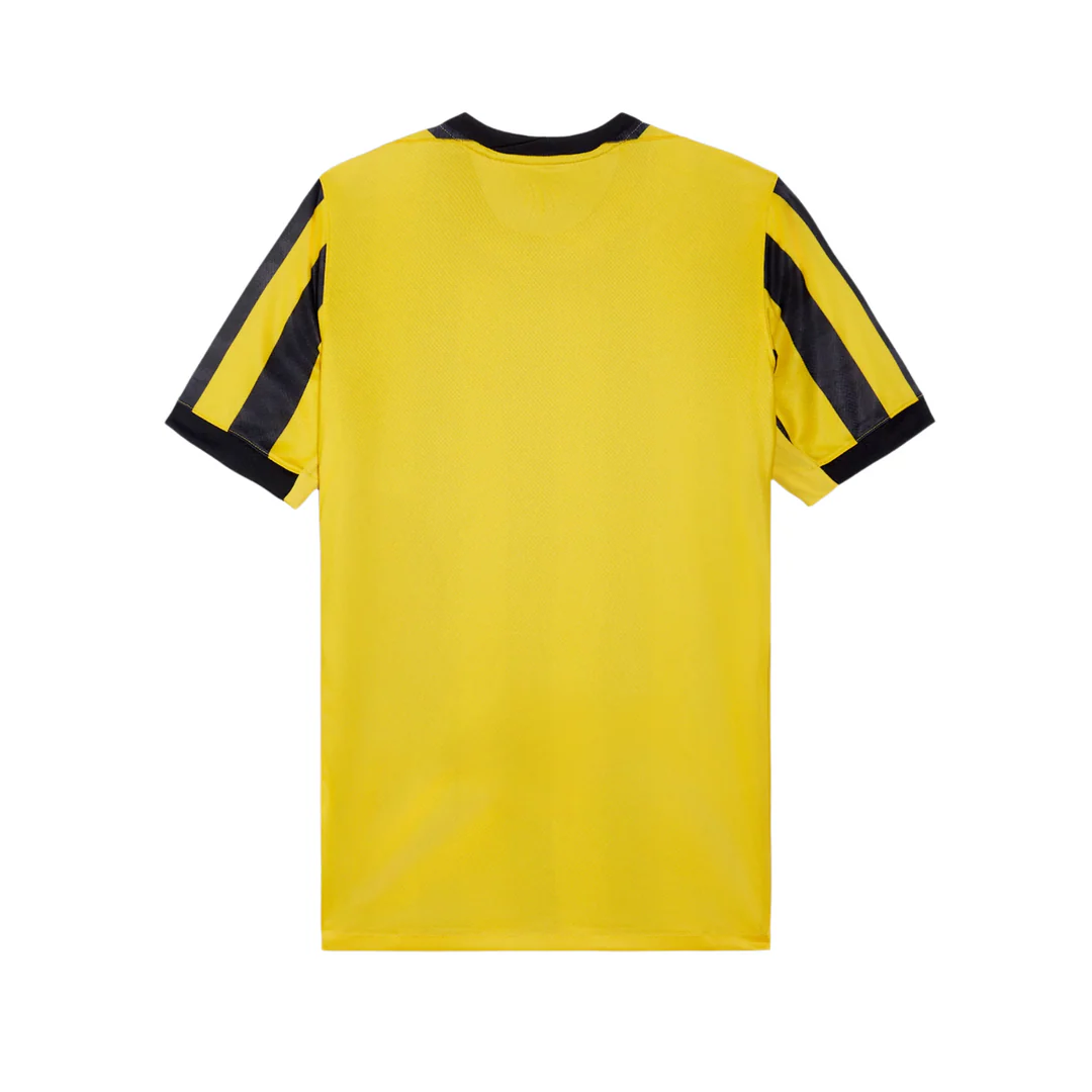 This new jersey blends bold modern style with the architectural heritage of Jeddah. Featuring cross-hatch patterns and striking stripes, it reflects the city's iconic landmarks and celebrates the enduring spirit of Al-Ittihad.