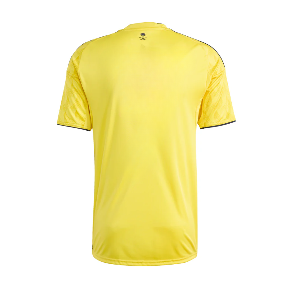Highlight your football fandom every time you pull on this AlNassr FC home jersey from adidas. Its radiant design draws inspiration from the blazing Riyadh sun and its soft fabric and moisture-managing AEROREADY ensure fans stay comfortable while they shout their support. On the chest, a club crest shows your loyalty.