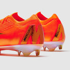 Sprint past defenders again and again with Nike Air Zoom Mercurial Vapor 16 Elite SE FG football boots in Total Orange/Metallic Vivid Gold. Look familiar? This “Deja vu” colourway celebrates the history of orange in the Mercurial series, borrowing elements from classics such as the Mercurial 360 and CR7 “Forged for Greatness”.